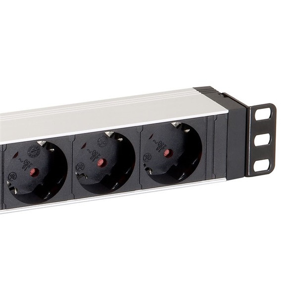 Equip Hálózati Elosztó - 333293 (Schuko, 8 Schuko, Rack 1U, 1,8m kábel, aluminium, fekete)
