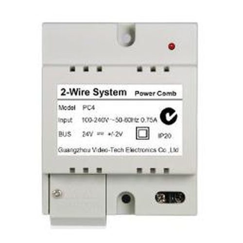 FUTURA tápegység és BUS illesztő, 2 vezetékes DT modellekhez, bemeneti feszültség 100~240 Vac, kimeneti feszültség 24Vdc, kimeneti áram 0.75A, rövidzár-, túlfeszültség- és túlterhelésvédelem, működési hőmérséklet -10°c~+50°C, – DIN sínes