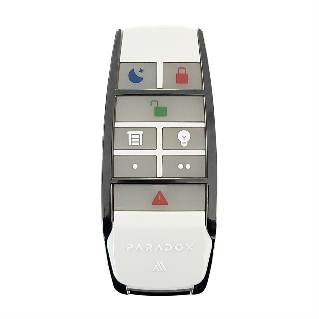 Paradox M széria - REM28M - Vízálló, 8 gombos távirányító, világító gomb visszajelzéssel. 1 db CR2032 líthium elem, fehér