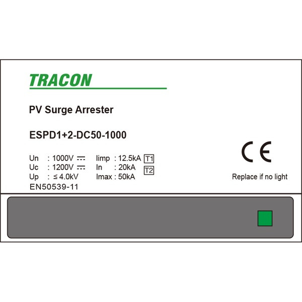 Tracon ESPD1+2-DC50-1000 egybeépített T1+T2 DC típusú túlfeszültséglevezető